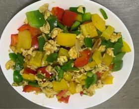鸡蛋注重不要炒老了,嫩嫩的些许蛋液附着在彩椒上,是最佳状态。