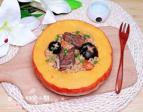 香菇蒸排骨属于红烧的口味,放入高压锅之前可以炖个10分钟,让排骨和香菇充分入味,汤汁够米饭焖熟的水分即可。金瓜这样蒸熟,当碗的同时,可以一起吃掉,非常不错的体验哟!