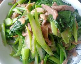 - 8. 利用锅的余温,把菜芯和牛柳拌匀。