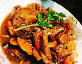 - 5. 加入鸭肉一起炒至微黄,倒入炒过的姜片,加入老抽、生抽、米酒,翻炒均匀。米酒是这道菜的关键,不可以省略,也不可以用料酒,味道不同。加开水没过鸭肉,用电压力锅煮30分钟即可。开火收汁,觉得淡可以加适量盐,汤汁收的差不多就可以出锅了。