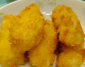 - 17. 将搞好的牛奶冻放入锅炸至金黄。
