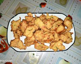 加入适量的面粉、盐拌均匀。再打入一个鸡蛋拌匀。
