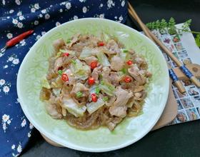 - 12. 装盘撒上葱花和小米辣点缀即可,一道美味的粉条炒肉就完成了。