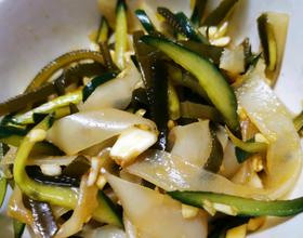 - 8. 加入味事达,醋,黄瓜,海带,面筋,凉皮搅拌均匀即可食用美味的凉拌凉皮了