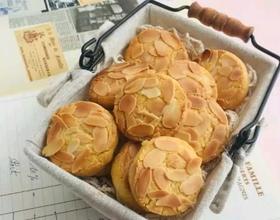 - 9. 切好的饼干摆放在烤盘上,撒上杏仁片装饰