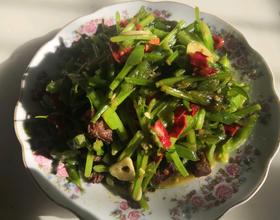 放半勺油,油热后,炒肉(放盐,花椒)熟后放葱