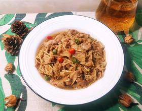 - 5. 倒入控过水的金针菇和肥牛快速翻炒。