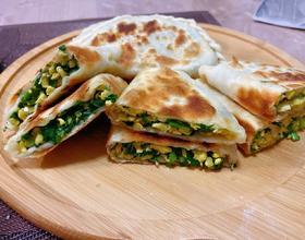 面揉成长条后切成一段一段备用,拿出一段擀成一大片,将馅儿放入像包饺子一样包起来,做个花边防止裂开。