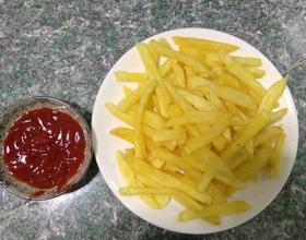 我做的炸薯条是现炸现吃的,所以不用加淀粉的。也不用冷冻。所以做起来不费时,做法更简单。