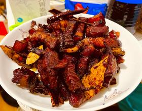 - 8. 水快干时,改大火翻炒收汁即可,装盘后可撒上适量葱花。