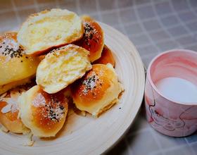 - 9. 拿出发酵好的小面包,开始在表面刷蛋液,然后在撒点芝麻或者桃片,椰蓉装点一下就可以开始烤啦,我家烤箱刚开始我是上下火160度烤的20分钟,没有上色,我又调到180度烤了5分钟