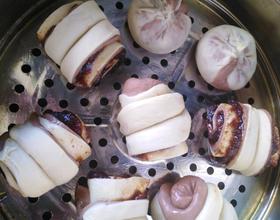 - 5. 切成大小均匀的小剂子,擀开包入红豆馅放入刷油的蒸屉里。