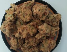 - 9. 油烧至六七成热时开始炸丸子,左手虎口挤出一个小圆球,右手用勺子或筷子拨下小圆球,放到油锅里,反复重复本步骤至面糊做完