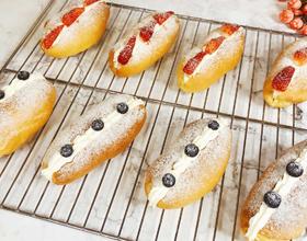- 26. 将冷藏的乳酪放入裱花袋里挤入中间缝隙