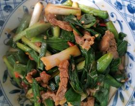 蒜苗杆熟的慢一些,肉不适合炒太久,叶熟的快。