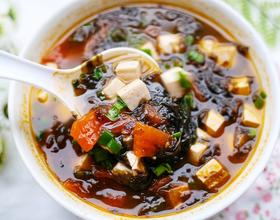 准备好所有食材。紫菜泡水洗净,嫩豆腐切小块。