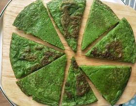 将烫好的菠菜放入料理机榨成汁,依次加入鸡蛋一个 面粉适量,白砂糖一点