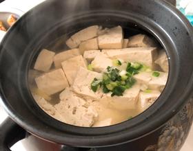 开水下锅,豆腐一定要气孔少一点的,压水后煮更嫩,这次是因为节省时间,也没买到合适的豆腐,就做了一个简单的,小火慢炖