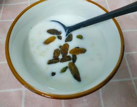 酒酿依自己口味添加适量。葡萄干装饰好看又好吃。