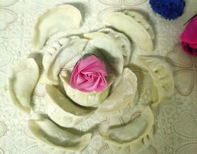 然后开始包饺子,两边对折包成花