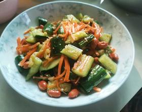 - 8. 冷藏半小时后拿出,然后再加入炸好的花生,搅拌开。这样,简单的凉拌拍黄瓜就做好了