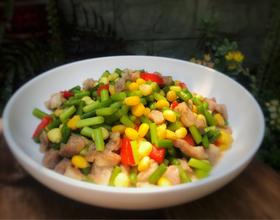 梅肉切成1.5厘米大小的丁,加入食用油、生抽、料酒、白胡椒粉、少许盐和淀粉抓匀码味10分钟。