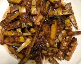 热锅凉油,少许葱花炝锅,倒入春笋大火炒制,加生抽炒入味后,加老抽和糖上色,加温水没过笋开盖焖烧大概20-30分钟,这样比较入味,中间要开锅查看,注意别干锅。火候差不多了了就大火收下汁,一道香甜的油焖笋就可以开动了,