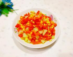 将胡萝卜削皮,切成0.5厘米左右大小的块状