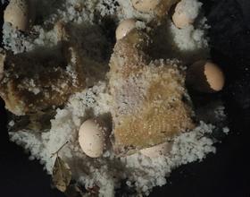 好了,可以出锅了,用刷子把盐扫干净,斩块就好了