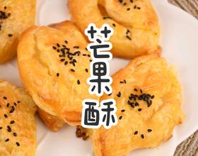 蛋挞壳中放入芒果丁,放入适量的马苏里拉芝士,轻对折包起
