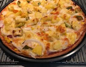 这款披萨主要的是菠萝和洋葱味十足,菠萝的香甜味和洋葱的甜味,口感特好