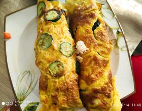 最好有小点的长方形煎锅,我这个锅是烧烤火锅的那种,有点太大了。饭条做时一定要压紧,否则会像我这个,有点散。另外一定先铺黄瓜片再撒蛋液,我就跟我妈说话的功夫,以为是炒鸡蛋,直接倒里了,这样在卷时,黄瓜会支出来,划破蛋卷,影响效果