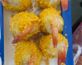 用面团包住虾肉,蘸少许蛋液,再来一层面包糠,油温五成,小火慢炸5分钟