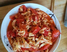 备好食材,西红柿切块,鸡蛋打好放入碗中,加点盐