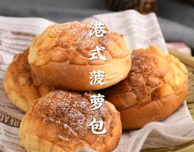 - 8. 用圆形模具切下一块菠萝皮,轻轻地包裹在面团上,切出纹路,继续发酵至2.5倍大