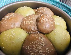 - 2. 可可面团:可可粉+面粉+盐+酵母糖水,搅拌均匀。抹茶面团: 抹茶粉粉+面粉+盐+酵母糖水,搅拌均匀