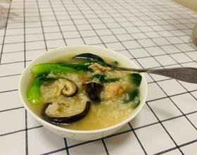 米熟成8成放进青菜,少量酱油,盐,煮8-10分钟即可