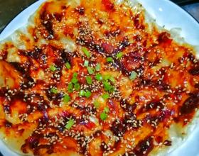 - 17. 最后,刷上酱;撒上熟芝麻和葱花,切成小块,开吃!