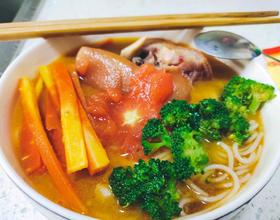 蒜香放入胡萝卜,西红柿猪蹄,翻炒,大火