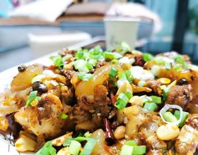 下油放辅料,豆瓣酱炒香,在下猪脚,在下老抽,最后放花生米哦