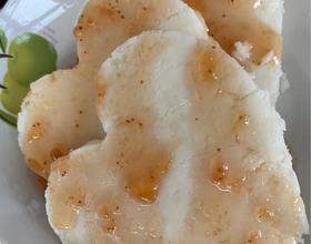 淋到山药泥上就可以品尝啦。我买的这个果酱山楂味浓些,比较酸、所以多放了一些糖