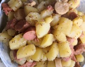 热油,土豆丁,火腿肠下锅,放入盐,孜然,翻炒三分钟,