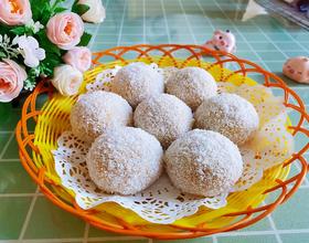 2蒸好要趁热粘椰蓉,凉了就粘不上了