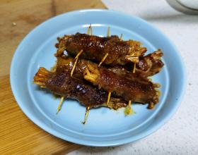 片刻后翻面,刷上烧烤酱,其他自己喜欢的酱汁也可以哦!