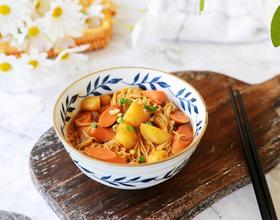 - 2. 土豆去皮切块,火腿肠切片,蒜切末,葱切葱花