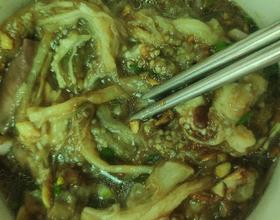 茄子熟了夹出来撕开一条条的,把拌好的酱倒进去,拌在一起,淋上热油就好了
