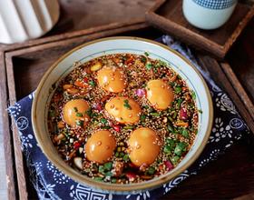 - 8. 鸡蛋去壳后放入酱汁中腌制一小时以上即可