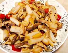 翻炒一会 加入藕带 泡椒 料酒 盐 生抽 耗油 ,继续翻炒