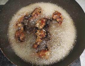 加入可乐,可乐盖过鸡翅,大火加热至可乐沸腾,转小火炖半小时,最后大火收汁,装盘