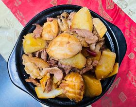 炒肉和土豆的时候一定要多炒一会,让土豆每一块每一个面都被油煎到了!